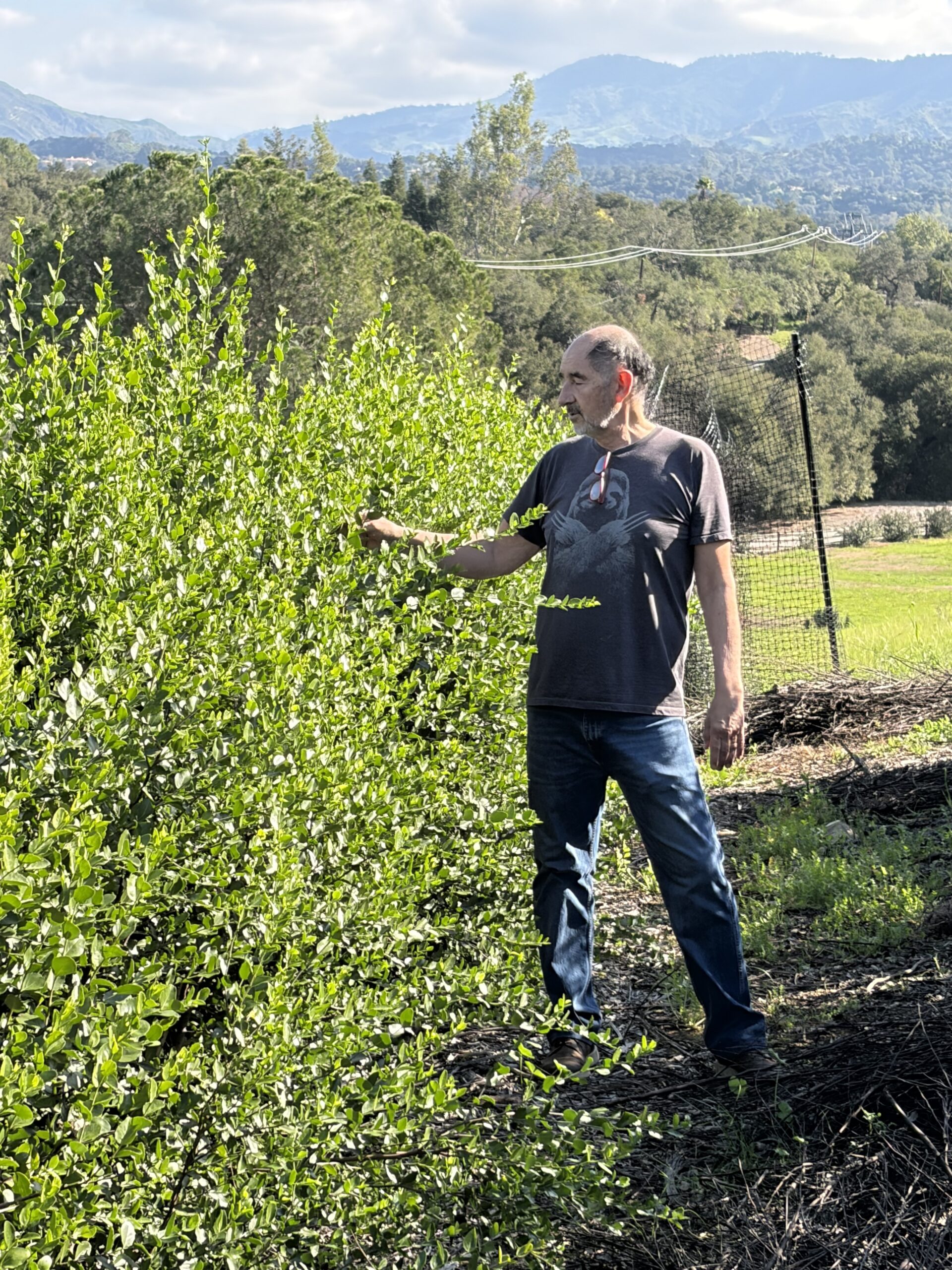 “Lo que hacemos acá es cultivar árboles como setos [hileras de arbustos o árboles plantados estrechamente], que en dos años producen suficientes hojas —que la hoja tiene cinco o seis veces más saponina que el palo— y tú las vas cosechando como cosecharías el té”, describe el académico.