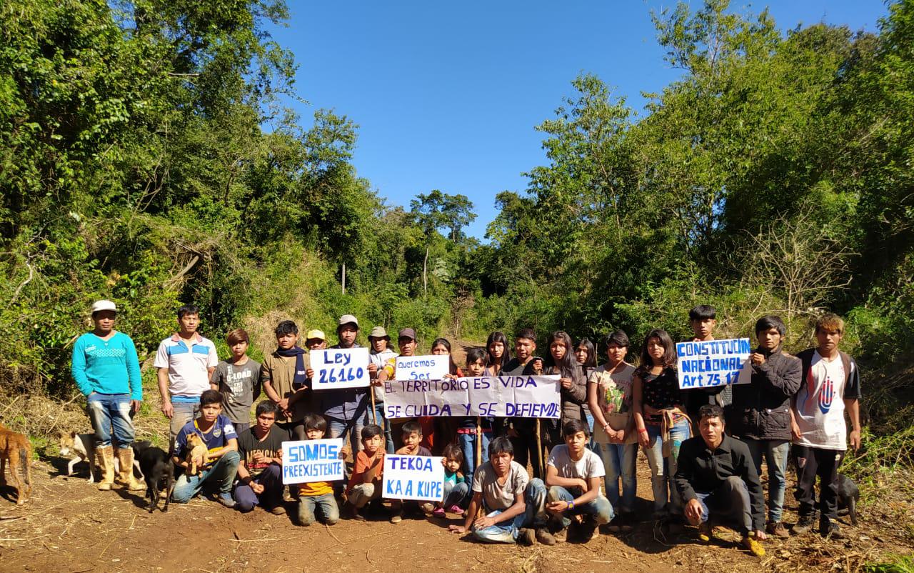 Miembros de la comunidad mbyá guaraní de la provincia de Misiones piden que se apliquen las leyes que defienden su derecho a ser propietarios de las tierras de sus antepasados. Foto: Comunidad Mbyá Guaraní.