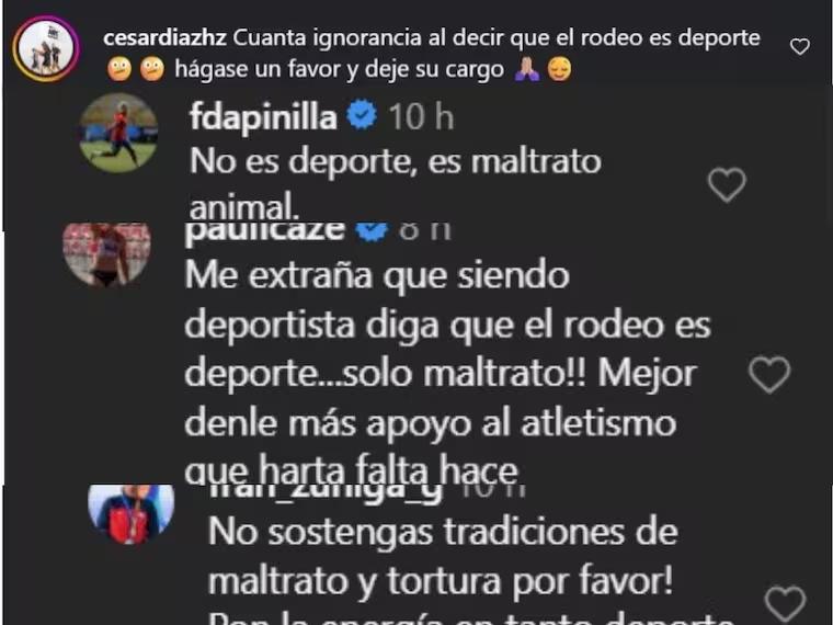En la misma línea, el maratonista César Díaz fue aún más crítico y apuntó directamente a la autoridad: “Es ignorancia decir que el rodeo es deporte. Hágase un favor y deje su cargo”.