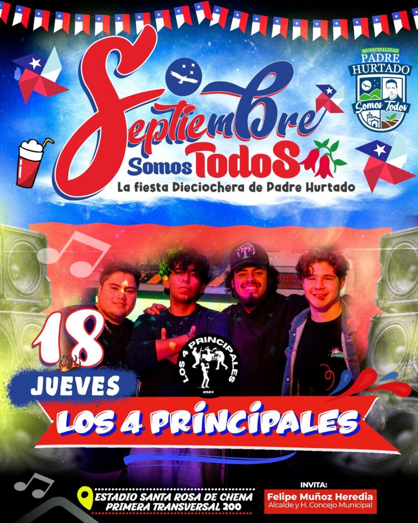 • Los 4 Principales (@los4principales_) se posicionan como los primeros en sumarse a esta gran celebración. Esta banda, integrada por cuatro talentosos músicos padrehurtadinos, promete hacer temblar el escenario con toda la potencia y energía del rock. Su confirmación marca el inicio de lo que será una programación musical de primer nivel.