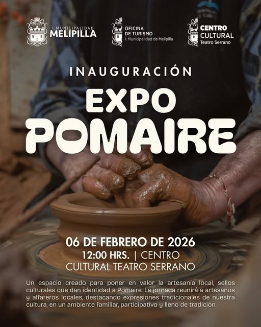 Este viernes 6 de febrero la Municipalidad de Melipilla inaugura oficialmente la Expo Pomaire, un espacio cultural creado para celebrar y poner en valor la milenaria artesanía local y los oficios que han hecho de este pueblo un ícono de la identidad chilena. La muestra, de carácter familiar y participativo, reunirá a destacados artesanos y alfareros en el Centro Cultural Teatro Serrano de Melipilla, donde permanecerá abierta hasta el 28 de febrero.
