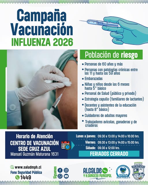 En el marco del Programa Nacional de Inmunizaciones (PNI), la comuna de Padre Hurtado ha dado inicio oficial a la Campaña de Vacunación contra la Influenza y el COVID-19. Esta iniciativa del Ministerio de Salud busca proteger a la población ante el aumento de virus respiratorios esperado para la temporada invernal.