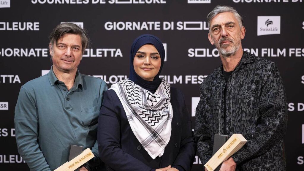 El documental Quien todavía vive (Qui vit encore, su título original en francés), del realizador ginebrino Nicolas Wadimoff, coproducción helvético-francesa, ganó el gran premio de Soleura. Da voz y ofrece la palabra a nueve refugiados palestinos que relatan sus vidas, la pérdida de seres queridos y el intento de reconstruir sus existencias tras el trauma de una agresión irresuelta. “Al compartir sus historias, los protagonistas buscan reconectar con ellos mismos, dejar de ser fantasmas”, subrayó el jurado al otorgarle el galardón principal, agregando que se trata de una obra que logra una gran hazaña al crear un contexto muy alejado del campo de batalla en Gaza, sin escenas directas de la agresión con el propósito de transmitir mejor el drama de la destrucción física y las pérdidas humanas (https://www.youtube.com/watch?v=DU0yYhJR3wgs).