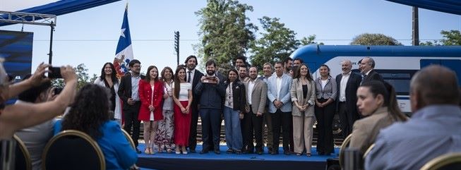 El Mandatario estuvo acompañado por el ministro de Transportes y Telecomunicaciones, Juan Carlos Muñoz; la ministra vocera de Gobierno, Camila Vallejo; el presidente de la Empresa de Ferrocarriles del Estado (EFE), Eric Martin; y el alcalde de Talagante, Sebastián Rosas, entre otras autoridades.