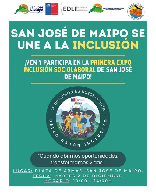 La comuna de San José de Maipo será sede de la Primera Expo de Inclusión Sociolaboral, una iniciativa que tiene como objetivo promover entornos más inclusivos y accesibles para todos los habitantes del territorio.
