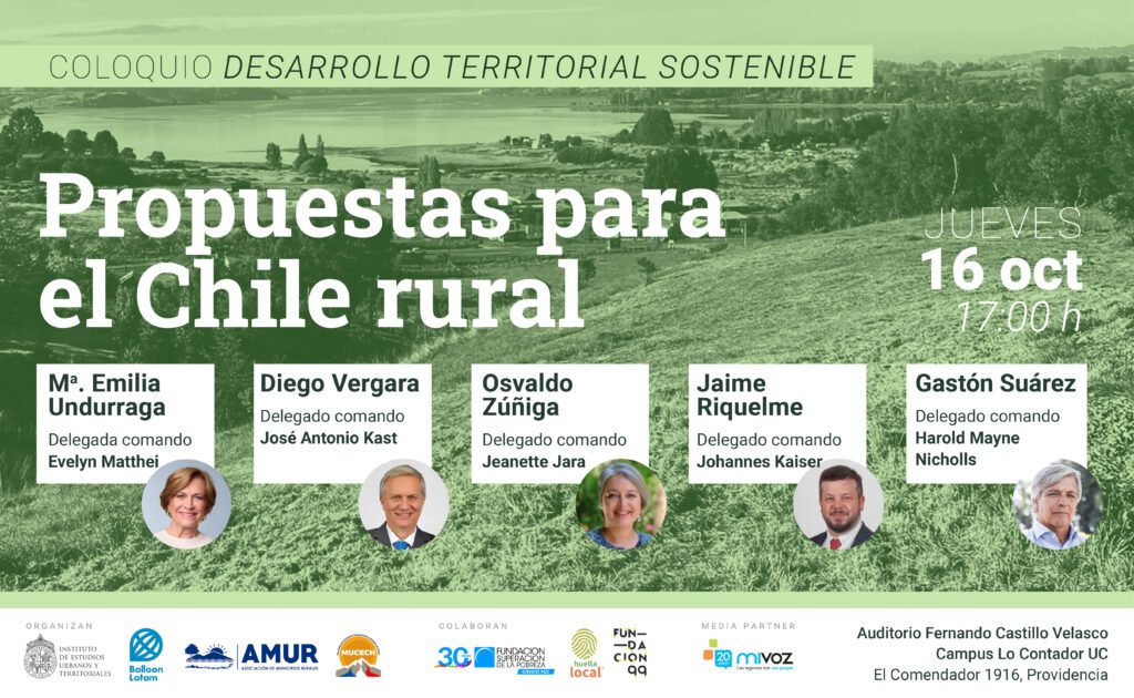 La Pontificia Universidad Católica de Chile, en colaboración con Balloon Latam, la Asociación de Municipios Rurales de Chile y el Movimiento Unitario Campesino y Etnias de Chile (MUCECH), ha organizado el Coloquio “Desarrollo territorial sostenible: Propuestas para el Chile rural”, un encuentro que busca poner en el centro del debate presidencial los desafíos que enfrentan las comunidades rurales del país.